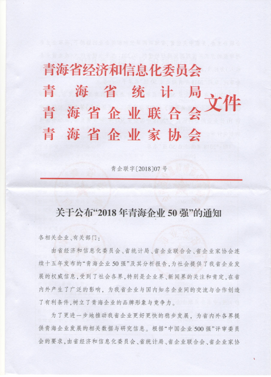 (集團(tuán)總經(jīng)辦?訊 戴淑琳/文)2017年,青海物產(chǎn)緊緊圍繞"穩(wěn)中求進(jìn)"工作總基調(diào),全面落實(shí)五大任務(wù)新措施,主動適應(yīng)經(jīng)濟(jì)發(fā)展新常態(tài),積極融入"一帶一路"建設(shè)機(jī)遇期,全力以赴創(chuàng)收增效,全力推動項(xiàng)目建設(shè),全力促進(jìn)轉(zhuǎn)型升級,保持了營收穩(wěn)步增長、效益穩(wěn)步提升、項(xiàng)目平穩(wěn)推進(jìn)、結(jié)構(gòu)不斷優(yōu)化的良好態(tài)勢。近日,青海省經(jīng)濟(jì)和信息化委員會、省統(tǒng)計(jì)局、省企業(yè)聯(lián)合會、省企業(yè)家協(xié)會聯(lián)合印發(fā)了《關(guān)于公布"2018年青海企業(yè)50強(qiáng)"的通知》(青企聯(lián)字〔2018〕07號),青海物產(chǎn)再次入選青海企業(yè)50強(qiáng),名列第12位。