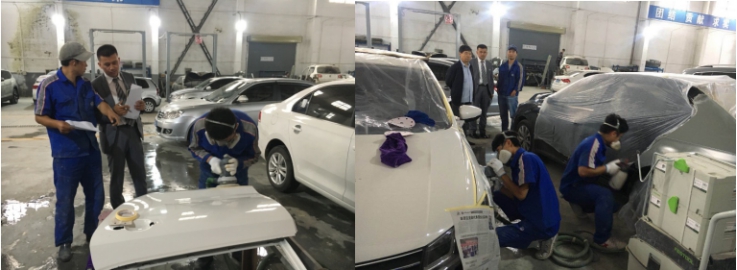 (物產(chǎn)汽貿(mào)公司 訊 崔燕飛、杜慶華/文攝)為進(jìn)一步提升公司售后維修人員業(yè)務(wù)水平,提高公司維修工人崗位技能與實際操作能力,從而更好的服務(wù)于客戶車輛的維修工作,為顧客安全出行提供有力保障。9月16日上午,總經(jīng)理助理、售后服務(wù)總監(jiān)杜慶華帶領(lǐng)售后管理人員,在朝陽車間對售后服務(wù)部即將轉(zhuǎn)正的4名漆工學(xué)徒進(jìn)行了現(xiàn)場考核。