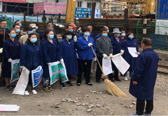 在三名黨支部書記的帶領下,黨員們分工明確、有條不紊,延鐵路專用線由南向北對積存垃圾、建筑垃圾、雜草進行清除?;顒又校h員們充分發(fā)揚不怕臟、不怕累的精神,有的掃地、有的撿拾垃圾、有的拔除雜草,呈現(xiàn)出一片熱火朝天的勞動景象。經(jīng)過一個多小時的勞動,鐵路專用線兩側垃圾得到徹底地清除。