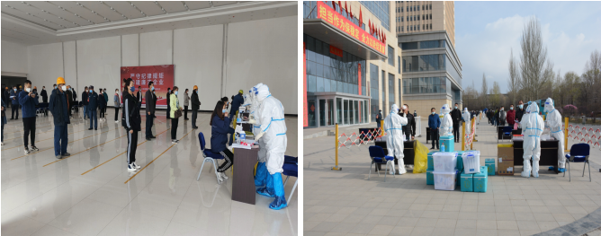 在疫情防控緊要時(shí)期,主動(dòng)配合落實(shí)核酸檢測(cè)等防控措施。多頻次聯(lián)系大通縣疫情防控指揮部及北川園區(qū)管委會(huì),于4月14日、4月17日開(kāi)展兩輪核酸檢測(cè)行動(dòng)。為做好本次核酸檢測(cè)工作,公司黨政領(lǐng)導(dǎo)班子高度重視,科學(xué)謀劃,與相關(guān)單位溝通銜接后,連夜加班在園區(qū)空曠區(qū)域設(shè)置檢測(cè)點(diǎn),方便核酸檢測(cè)工作;同時(shí)根據(jù)公司生產(chǎn)經(jīng)營(yíng)實(shí)際,公司財(cái)務(wù)審計(jì)部、實(shí)業(yè)開(kāi)發(fā)部人員、供銷(xiāo)部負(fù)責(zé)同志協(xié)同公司所屬各單位,密排人員在崗、離崗、休班情況,提前編制完成人員信息統(tǒng)計(jì)及分組排序表;歷經(jīng)全員密切配合,兩次共采集核酸檢測(cè)樣本2093個(gè),保證了篩查應(yīng)檢盡檢、無(wú)一遺漏,及時(shí)排除風(fēng)險(xiǎn)