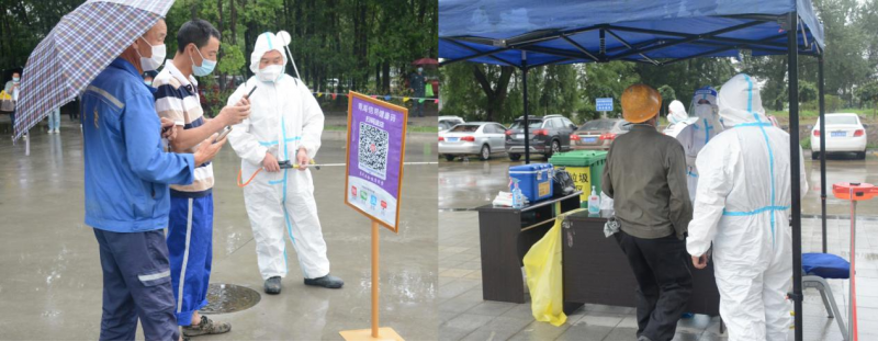 清晨,在綿綿細(xì)雨中園區(qū)新一輪區(qū)域核酸檢測有序推進(jìn),核酸檢測點(diǎn)搭起遮雨帳篷,公司廣大黨員干部奮勇?lián)?dāng)沖鋒在前,維護(hù)秩序、進(jìn)行掃碼,醫(yī)護(hù)人員快速有效地采集核酸。大家上下同心、通力配合,有序高效的進(jìn)行核酸檢測,僅用了三個多小時就全面完成了園區(qū)人員核酸采樣工作。據(jù)統(tǒng)計,本次核酸檢測共有1103名干部職工及外租單位人員參加,檢測結(jié)果全部為陰性。