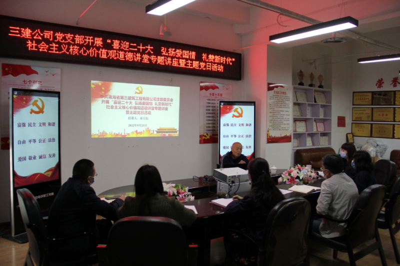 (省三建公司 訊 韓毓、王文杰/文 韓毓/攝 )2022年是黨的二十大召開之年,是落實省第十四次黨代會精神開局之年。為持續(xù)鞏固拓展黨史學(xué)習(xí)教育成果,加強精神文明建設(shè),深化民族團結(jié)進步宣傳教育和感恩教育,講好各族民族守望相助、團結(jié)奮進的國企故事,積極培育和踐行社會主義核心價值觀,9月21日,公司黨支部開展“喜迎二十大 弘揚愛國情 禮贊新時代”社會主義核心價值觀道德講堂專題講座暨主題黨日活動。