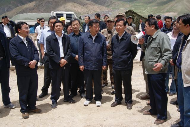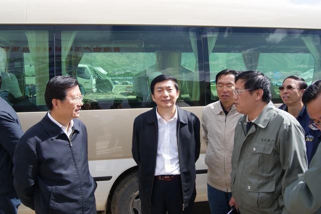 6月19日,中共中央政治局委員、國(guó)務(wù)院副總理、國(guó)務(wù)院抗震救災(zāi)總指揮部總指揮回良玉率領(lǐng)相關(guān)部委領(lǐng)導(dǎo),在青海省委書記強(qiáng)衛(wèi)、省長(zhǎng)駱惠寧、副省長(zhǎng)馬順青的陪同下,來到正在晝夜施工建設(shè)的青海物產(chǎn)玉樹建材物流集散中心,視察災(zāi)后重建物資儲(chǔ)備情況和集散中心工程建設(shè)情況。集團(tuán)總經(jīng)理王玉輝向中央領(lǐng)導(dǎo)和省領(lǐng)導(dǎo)詳細(xì)匯報(bào)了建材物流集散中心建設(shè)規(guī)模和鋼材、水泥、木材三大類物資收儲(chǔ)情況。同時(shí)表示,青海省物產(chǎn)集團(tuán)總公司將一如既往,全力以赴支援玉樹災(zāi)后重建,與各路建設(shè)大軍一道,為建設(shè)美好綠色新玉樹貢獻(xiàn)力量。聽完匯報(bào),回良玉副總理非常高興,并做出重要指示,要做好統(tǒng)籌組織建材物資的采購(gòu)和調(diào)運(yùn)工作,努力保障供應(yīng),確保質(zhì)量,降低成本?;亓加窀笨偫砑笆☆I(lǐng)導(dǎo)與集團(tuán)領(lǐng)導(dǎo)、工作人員合影留念。