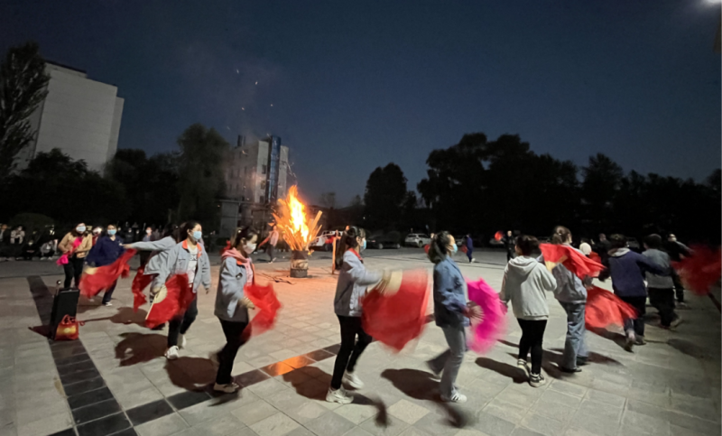 伴隨著歡快的花兒小調,干部職工在月夜里圍繞篝火載歌載舞、歡聚一堂,他們歡樂幸福的表情感染著駐足觀看的每一位工友們。