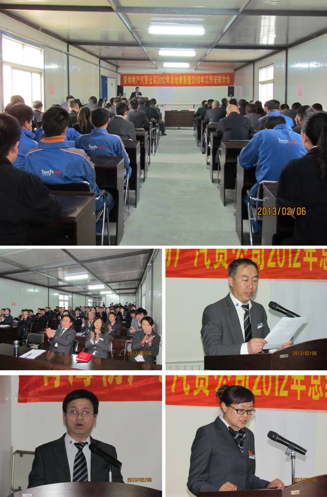 2月6日下午17點(diǎn),青海物產(chǎn)汽貿(mào)召開了以"腳踏實(shí)地創(chuàng)佳績奮發(fā)圖強(qiáng)展新顏"為主題的2012年度工作總結(jié)暨2013年工作安排會議,150余名職工參加了大會,會議由副總經(jīng)理高金春主持。